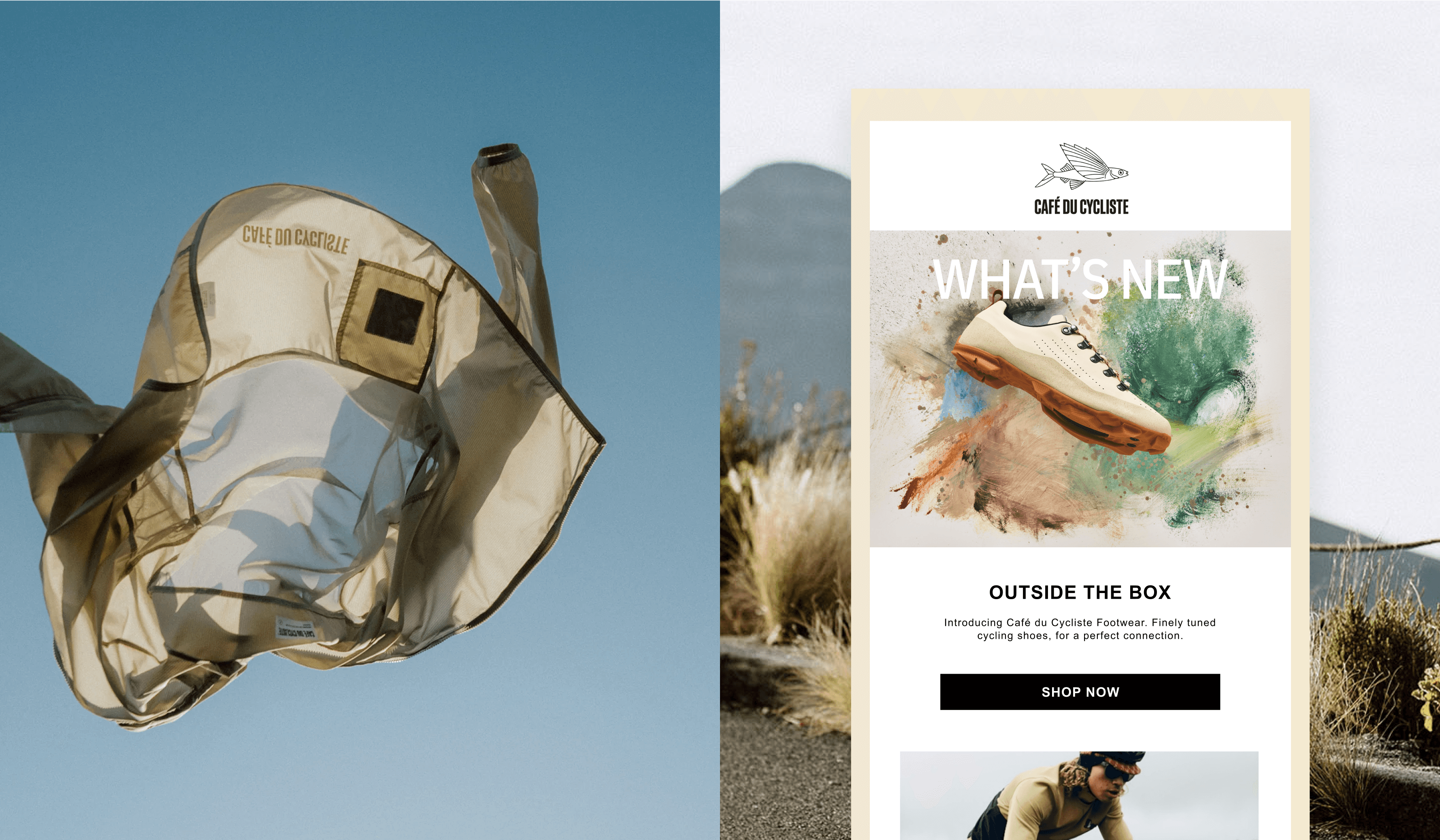 A bold, youthful email design system with sophisticated French flair—balancing visual impact with strategic functionality. The modular architecture empowers the marketing team with creative flexibility while ensuring every email reinforces Café du Cycliste's premium brand identity.