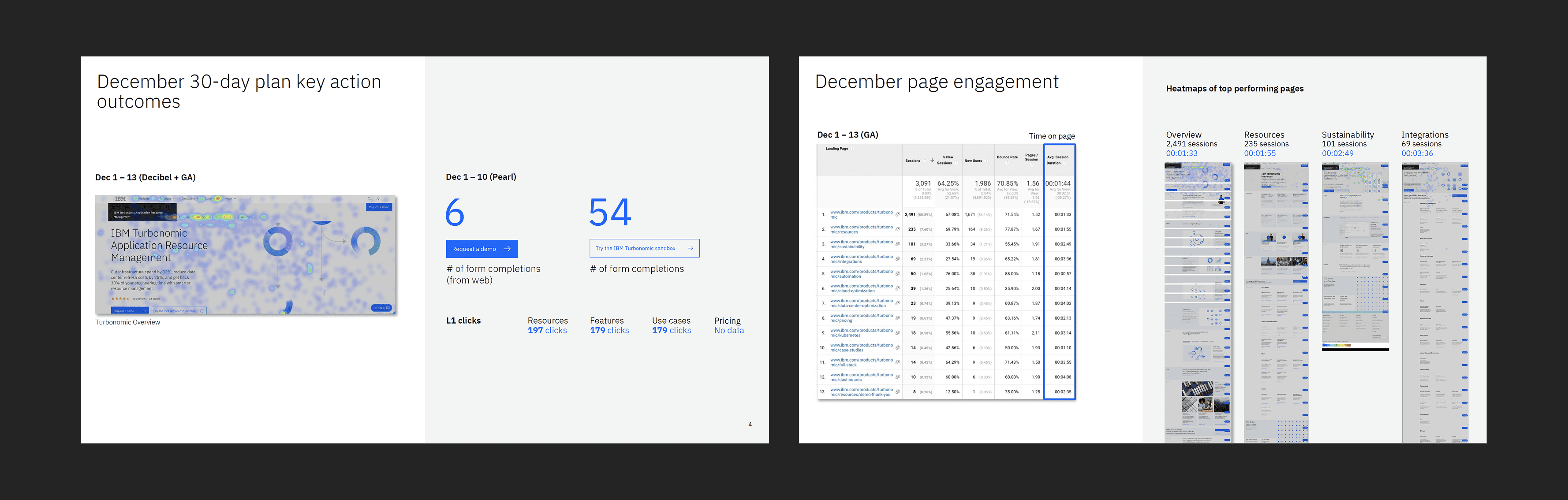 The Turbonomic product marketing site transformation delivered measurable business impact. The team successfully delivered 10 net new pages and established a more cohesive, discoverable product experience. Through strategic UX optimization based on user analytics and experimentation, engagement increased 22% and trial responses increased 213%.