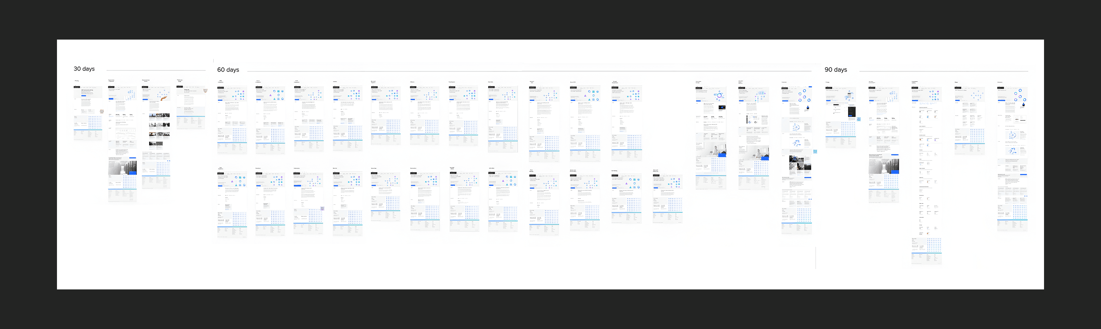 After the initial site launch, a product-led growth (PLG) strategy was introduced to optimize the new experience and drive higher engagement. A 30-60-90 day plan was developed in collaboration with Product Marketing, Product Management, Digital Sales, and cross-functional teams. The initiative included building new pages, optimizing existing content, conducting SEO research, analyzing baseline performance metrics, developing updated site architecture, and creating targeted content. This structured approach established a foundation for measuring performance and iterating based on user behavior.
